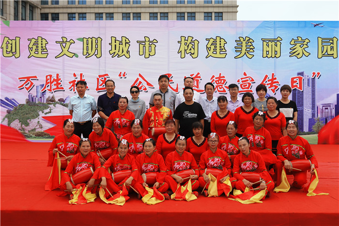 活动中,中国海盐博物馆文化志愿者为社区居民送上盐城历史文化名人展,讲解了27位盐城籍或在盐城这块土地上作出过卓越贡献的历史文化名人故事,向居民发放了创建文明城市宣传材料,还与万胜社区居民共同举办了文艺演出,赢得在座数百观众的阵阵掌声。