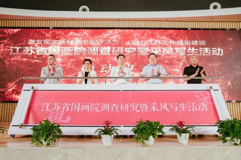 启动仪式上,江苏省国画院写生创作基地正式揭牌,这也是省国画院首次在地方设写生创作基地。为进一步推动艺术创作再迈新台阶,省国画院与盐城市文化广电和旅游局共同主办了这次调研和采风写生活动。从7月1日开始到7月7日,省国画院40位专职书画家将在新四军纪念馆、盐城市美术馆、黄海森林公园、建湖九龙口等文旅场所及盐城基层进行为期一周的调研和采风写生活动。